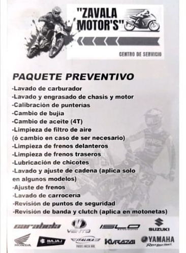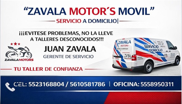 Buscas un taller de motos confiable y no tienes tiempo de acudir a alguno, no busques mas... ZAVALA MOTOR´S MOVIL es la mejor opción, nosotros vamos hasta tu domicilio o trabajo AGENDA HOY MISMO y vive la experiencia de llevar el taller hasta donde tu estes, ZAVALA MOTOR´S MOVIL RUEDA CONTIGO Y RUEDA SEGURO ...