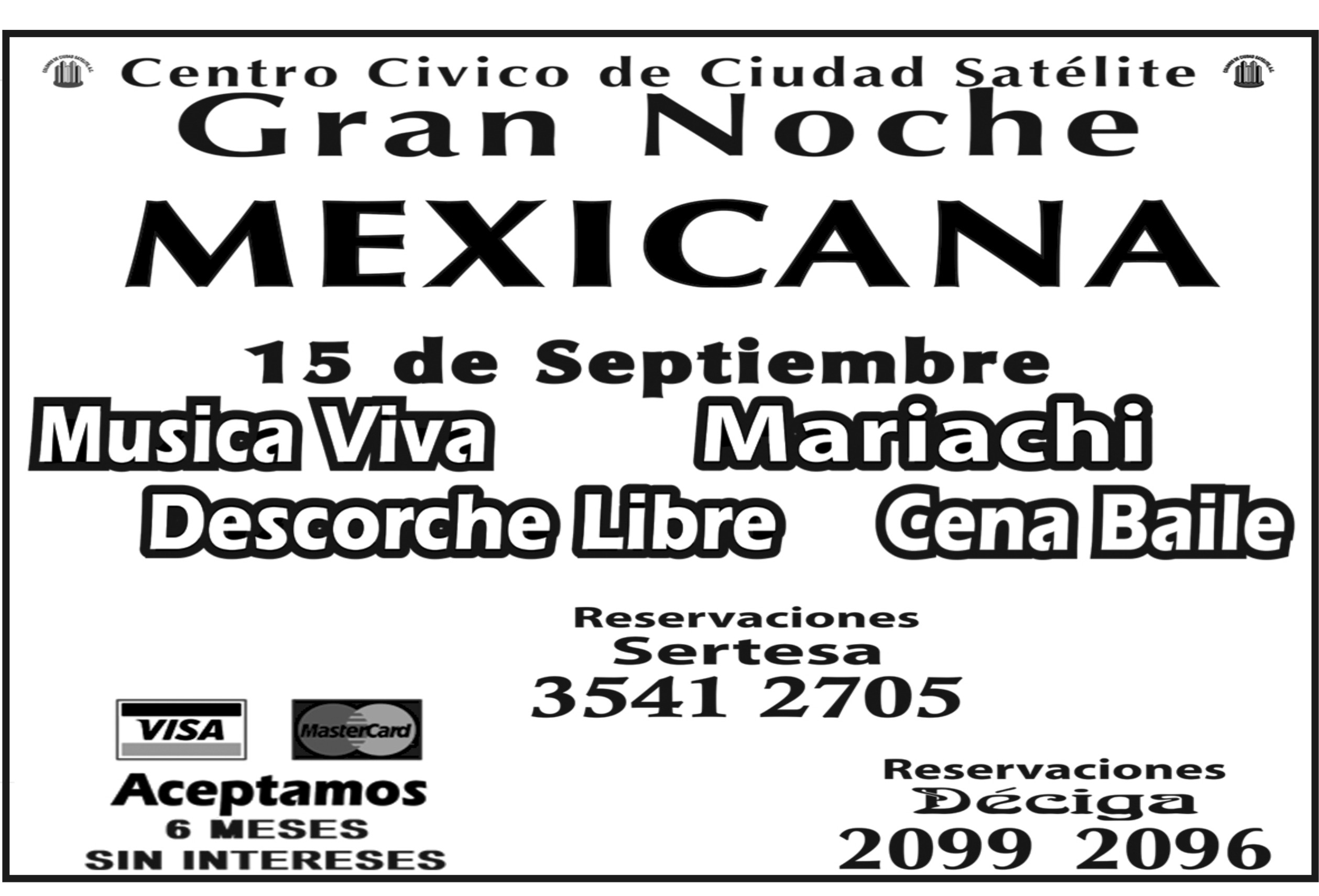 CENTRO CIVICO DE CIUDAD SATELITE GRAN NOCHE MEXICANA RESERVACIONES DECIGA 2099-2096