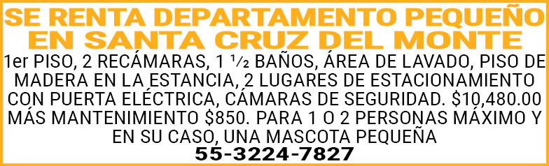 1er PISO, 2 RECAMARAS, 1 1/2 BAÑOS, AREA DE LAVADO, PISO DE MADERA EN LA ESTANCIA, 2 LUGARES DE ESTACIONAMIENTO CON PUERTA ELECTRICA, CAMARAS DE SEGURIDAD. $10,480.00 MÁS MANTENIMIENTO $850
